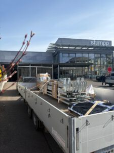 Da wir auf dem Ferienprogrammgelände keine Lieferungen annehmen können, durften wir die Anlieferung über die Firma Stumpp annehmen. Vielen dank für die Annahme der Paletten und das umladen auf einen Anhänger für den Transport auf die Eifi.